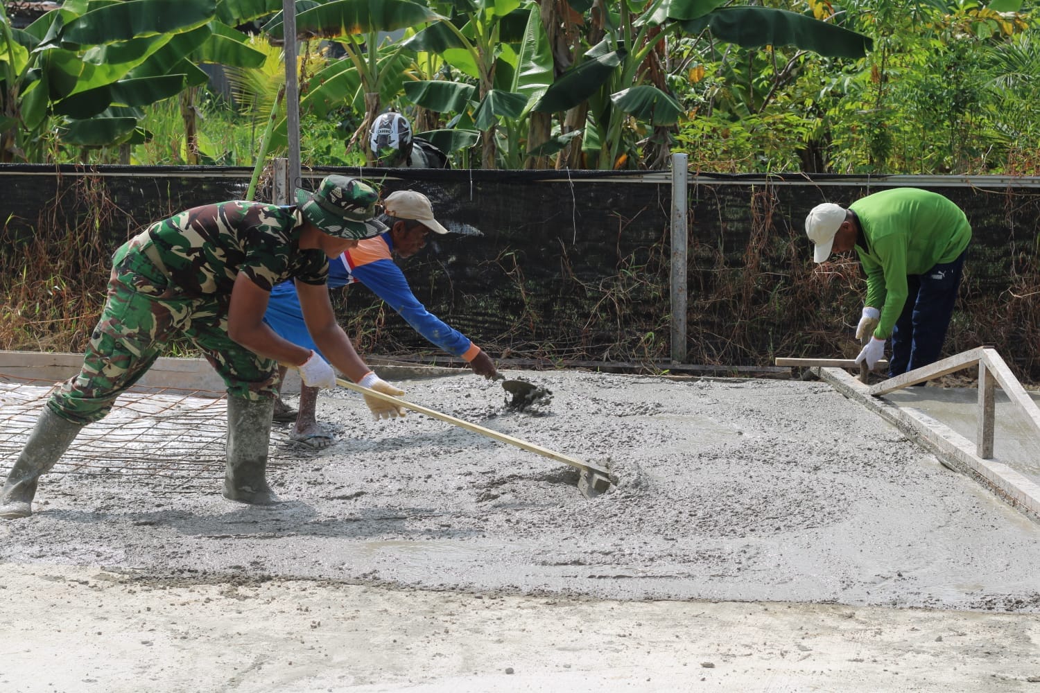 Kegiatan pengecoran tersebut merupakan bagian dari upaya peningkatan sarana ibadah bagi masyarakat setempat. Dengan semangat gotong royong, personel TNI dan warga bahu-membahu mengerjakan proses pengecoran secara manual, mulai dari pengadukan material hingga perataan cor, guna memastikan hasil yang maksimal dan kokoh.