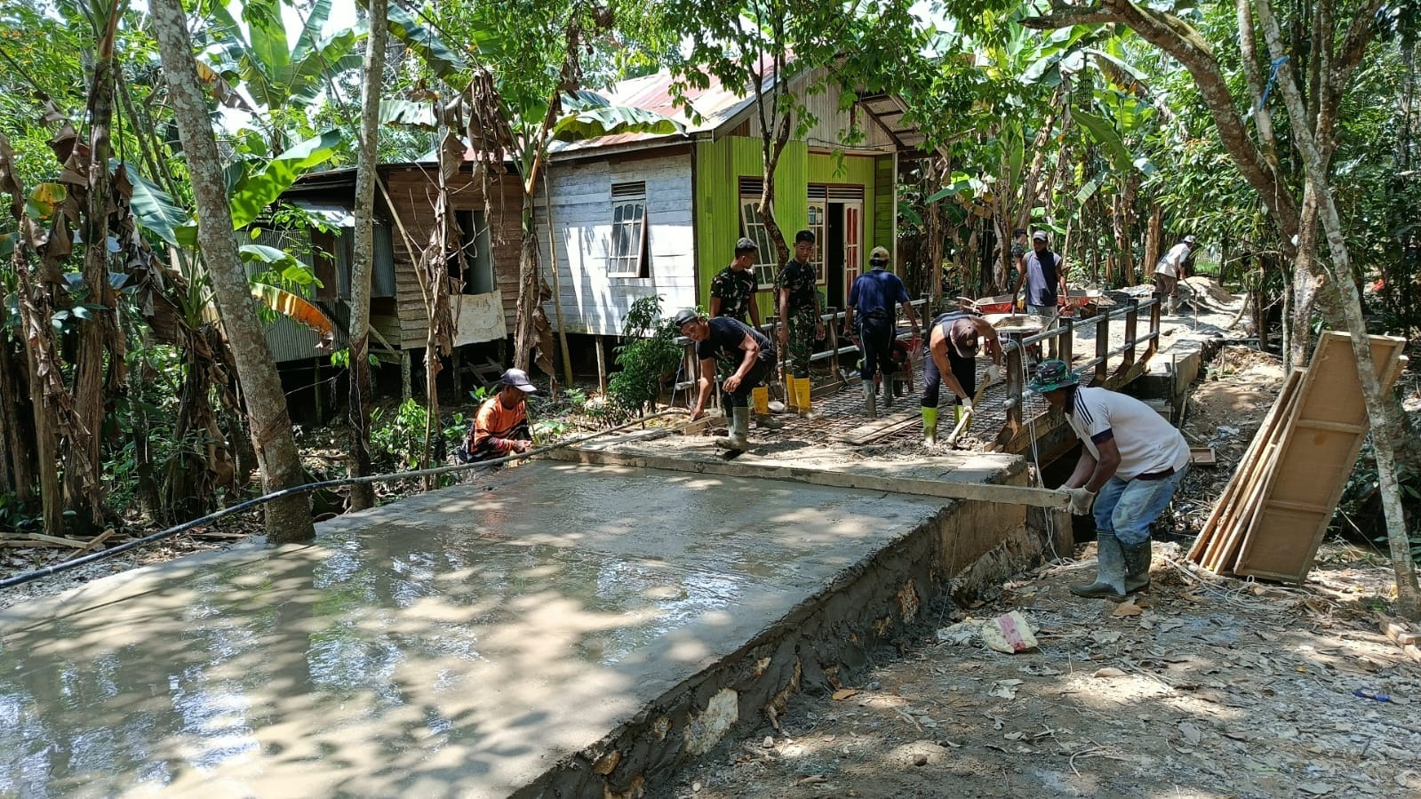 Progres ini menjadi tanda nyata bahwa pembangunan berjalan sesuai rencana. Di lapangan, terlihat aksi gotong royong antara anggota satgas dan masyarakat yang terus menjadi warna dalam setiap tahapan pengerjaan. Dengan penuh semangat, mereka bahu membahu menyelesaikan proses pengecoran demi memastikan kualitas dan kekuatan jembatan.