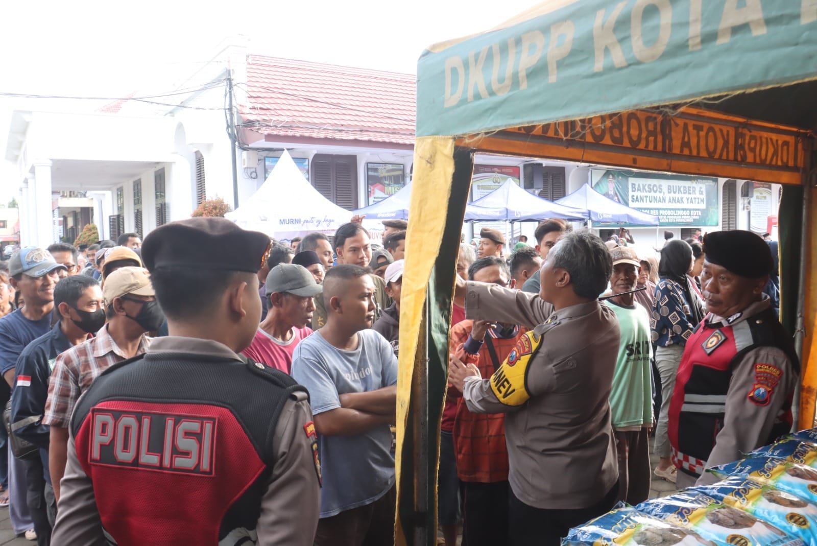 Dalam kegiatan tersebut, Polres Probolinggo Kota menyalurkan santunan kepada 50 anak yatim piatu serta membagikan bantuan sosial berupa beras kepada 500 masyarakat.