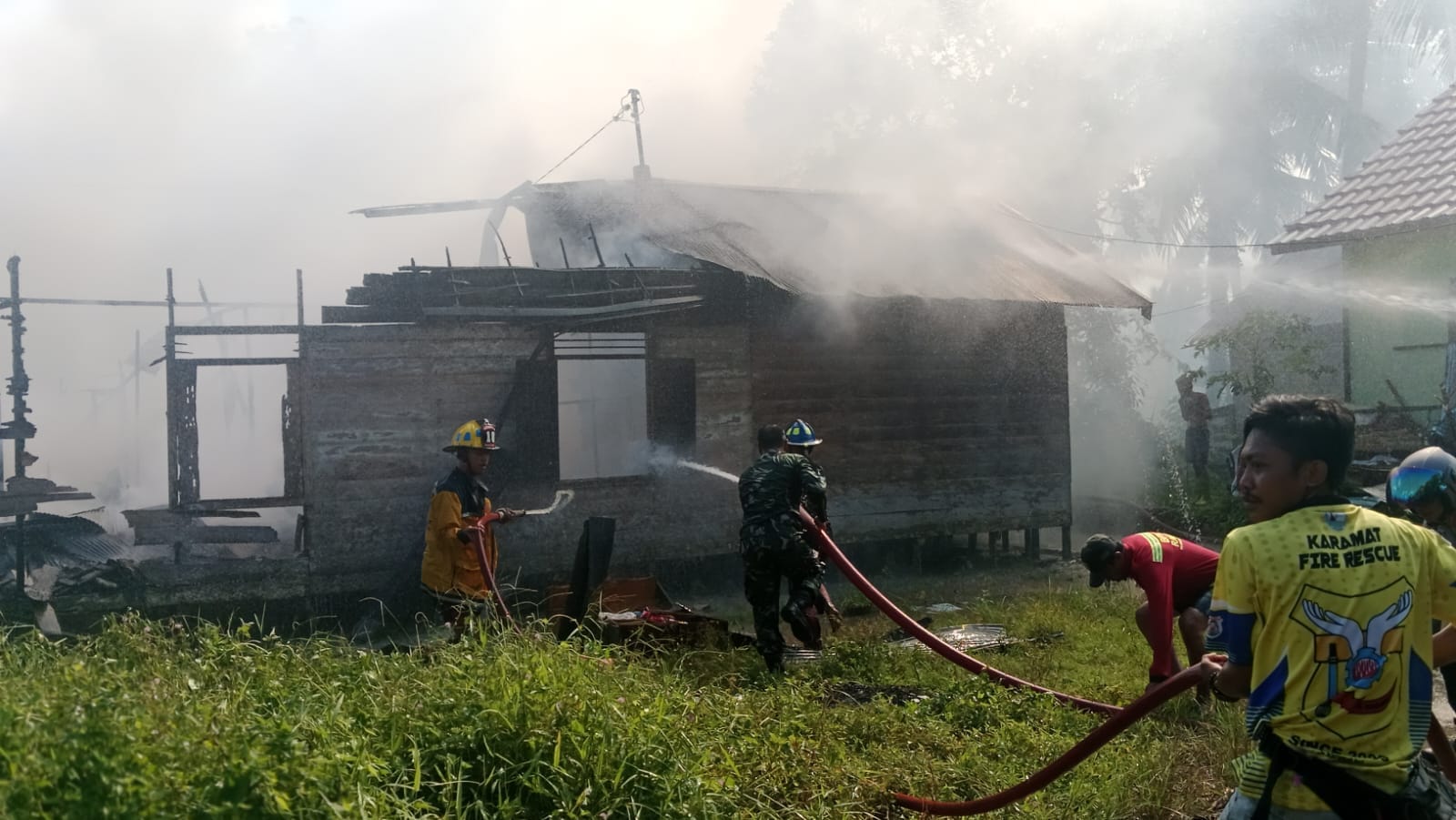 Sementara itu, rumah milik Syamsuni (1 KK, 3 jiwa) juga mengalami kerusakan dengan kondisi terbakar total.