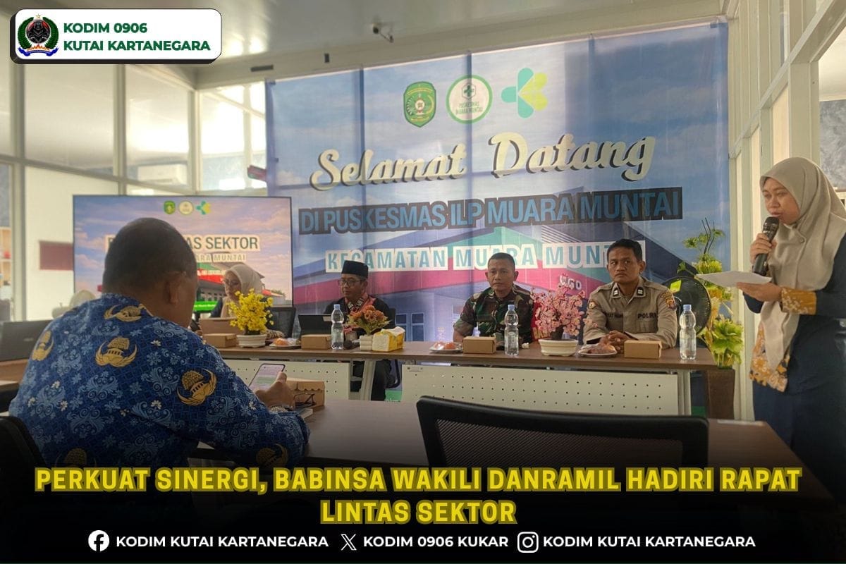 Kutai Kartanegara. barometerindonesianews.com– Dalam rangka memperkuat sinergi dan koordinasi antarinstansi, anggota Babinsa Koramil 0906-10/Muara Muntai Sertu Munir mewakili Danramil menghadiri kegiatan Rapat Lintas Sektor yang digelar diruang pertemuan Puskesmas Desa Muara Muntai Ilir kecamatan Muara Muntai dimana rapat lintas sektor tersebut dihadiri oleh unsur pemerintahan dan pemangku kepentingan di tingkat kecamatan, Jumat 24/6/26.