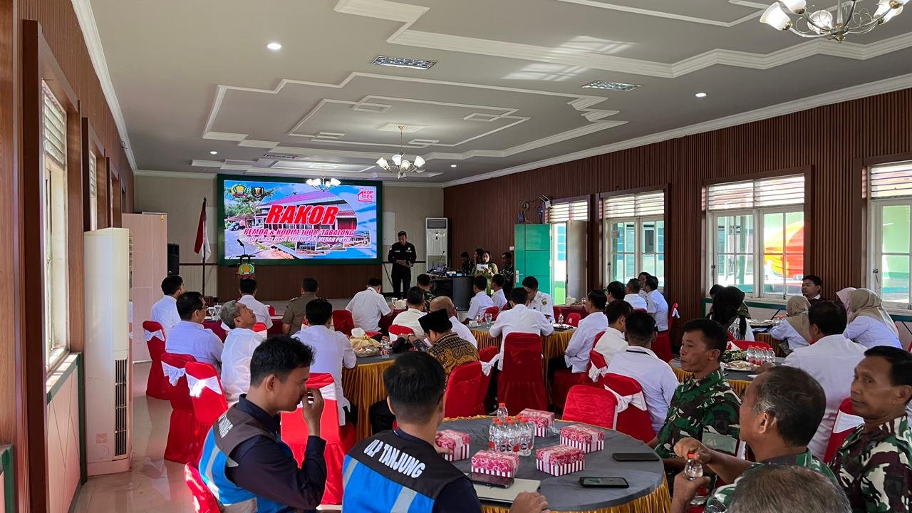 Tabalong – Dalam rangka percepatan pembangunan Koperasi Desa/Kelurahan Merah Putih (KDKMP) di wilayah Kabupaten Tabalong, Kodim 1008/Tabalong melaksanakan kegiatan Rapat Koordinasi (Rakor) bersama berbagai instansi pemerintahan, Rabu (08/04/2026). Kegiatan ini berlangsung di Aula Pandu Sakti Makodim 1008/Tabalong.