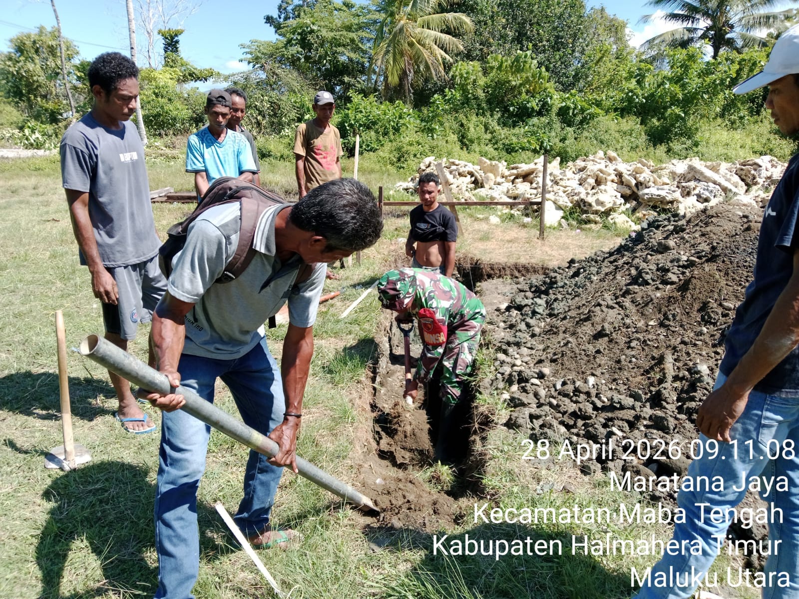 Semangat Gotong Royong, Babinsa Koramil 1505-03/Maba dan Warga Kompak Bangun Pondasi Gereja