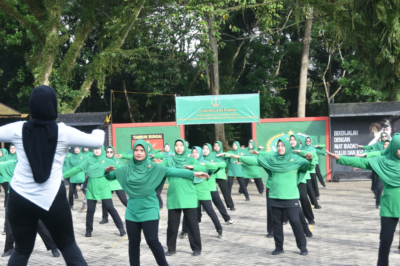 Kegiatan olahraga bersama ini dipimpin langsung oleh Ketua Persit Kartika Chandra Kirana Cabang XXV Dim 1002 Koorcab Rem 101 PD XXII/Tambun Bungai, Ny. Hapsari O. P. Siregar, dan diikuti oleh seluruh pengurus serta anggota Persit Cabang XXV Dim 1002.