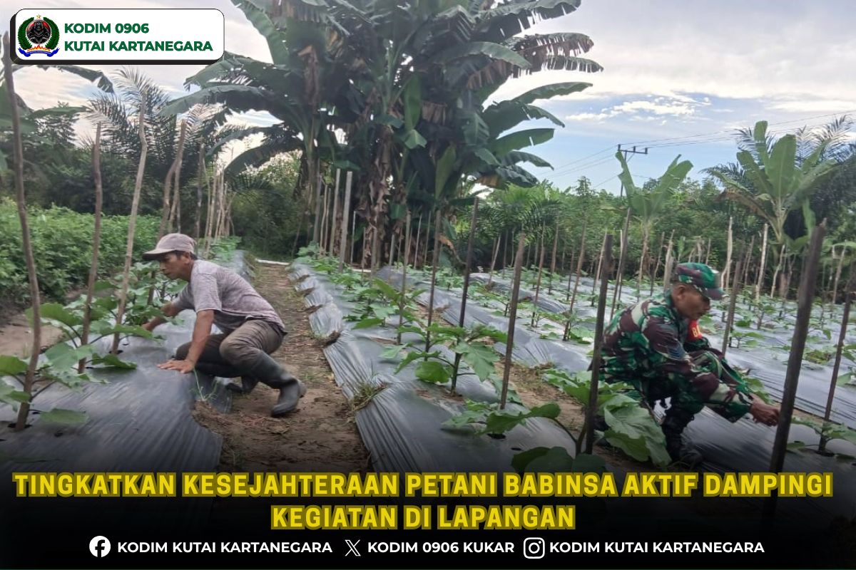 Kutai Kartanegara. barometerindonesianews.com- Dalam mendukung meningkatkan kesejahteraan petani yang ada di wilayah binaan, anggota Babinsa Koramil 0906-08/Muara Kaman Serma Makbul melakukan pendampingan kepada petani terong yang berada di wilayah binaan tepatnya rt 08 Desa Muara Kaman Ulu Kecamatan Muara Kaman, Senin 20/4/26.