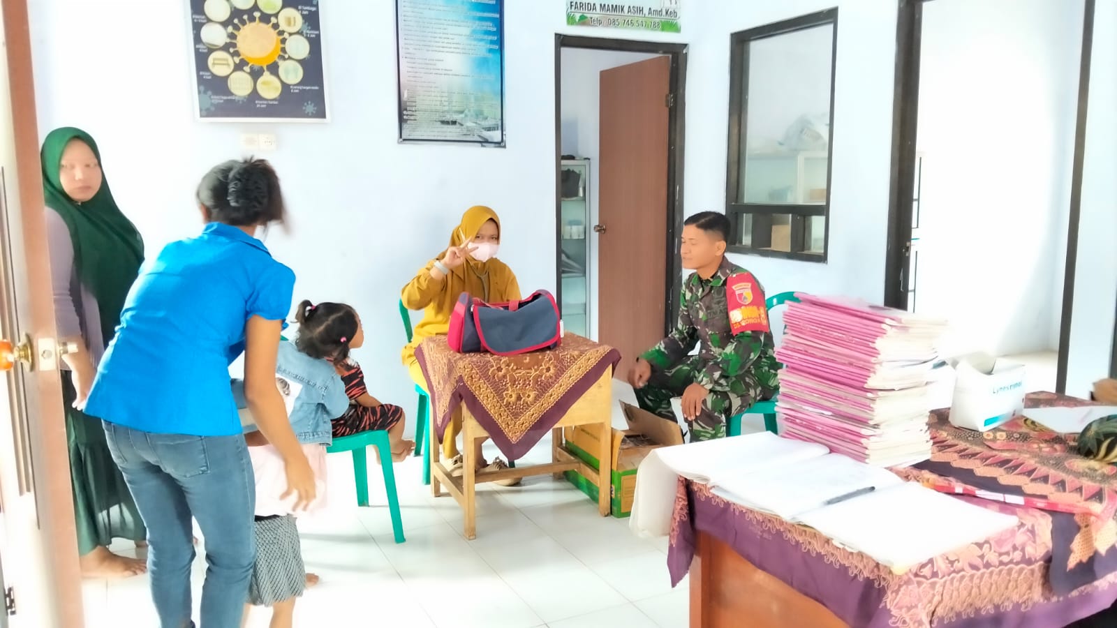 Probolinggo – Koramil 0820-10/Kuripan melakukan pemantauan sekaligus pendampingan dalam pelaksanaan kegiatan Posyandu Balita, Ibu Hamil dan Lansia di Posyandu Dusun Lajuk RT 02 RW 01 Desa Wonoasri, Kecamatan Kuripan, Kabupaten Probolinggo, Selasa (21/4).