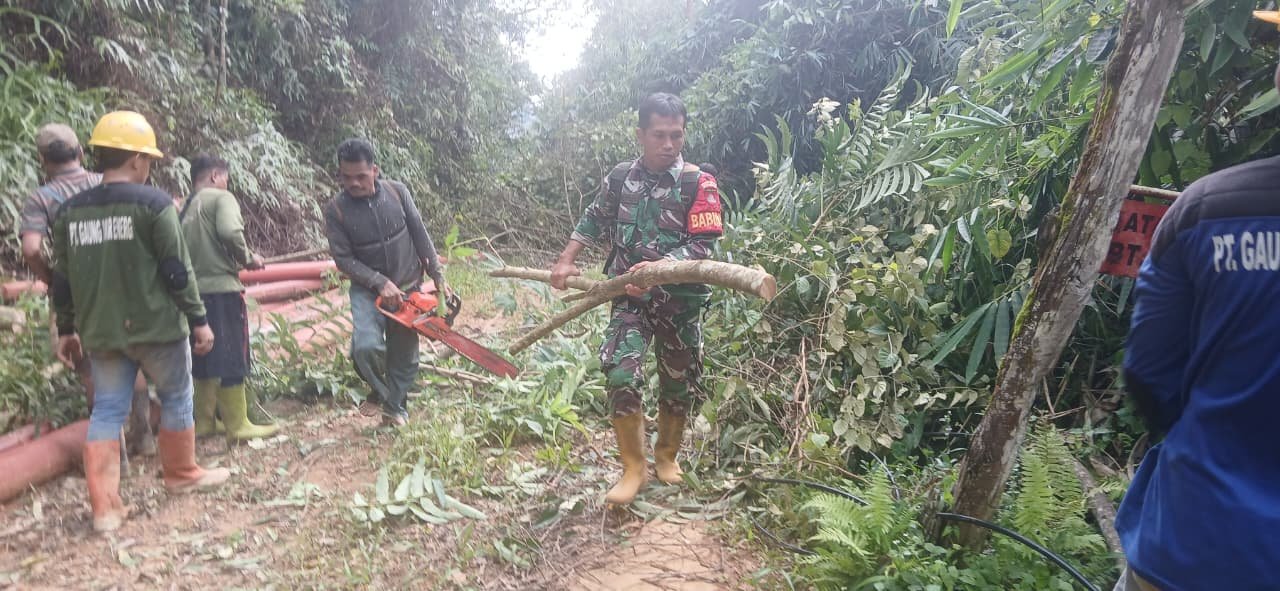 Wujud Kepedulian TNI, Babinsa Dampingi Warga Bersihkan Jalur Listrik Desa